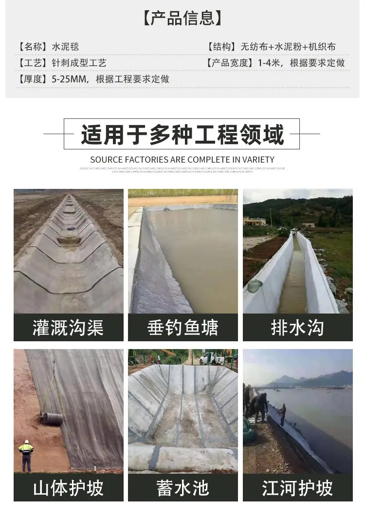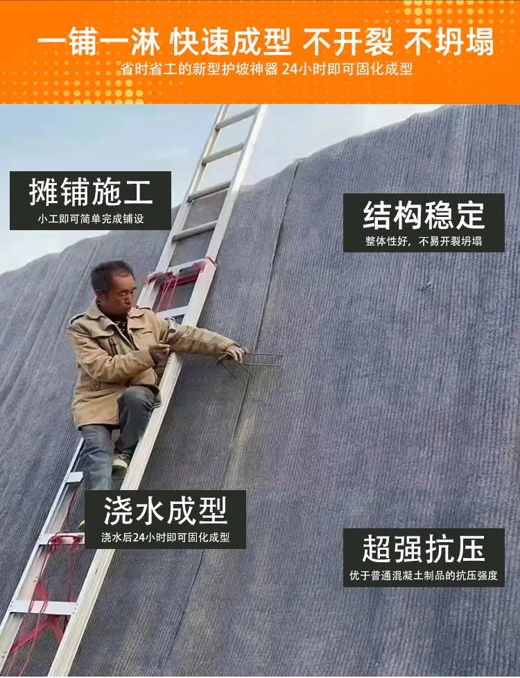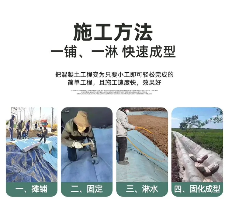 水泥毯作为的多用途材料,实现了施工的高效性。施工简单、节省成本、运输便捷等优势使其成为传统混凝土护坡的理想替代品。无论是在护坡、硬化等领域,水泥毯都能够提供更便捷、经济和可靠的解决方案。